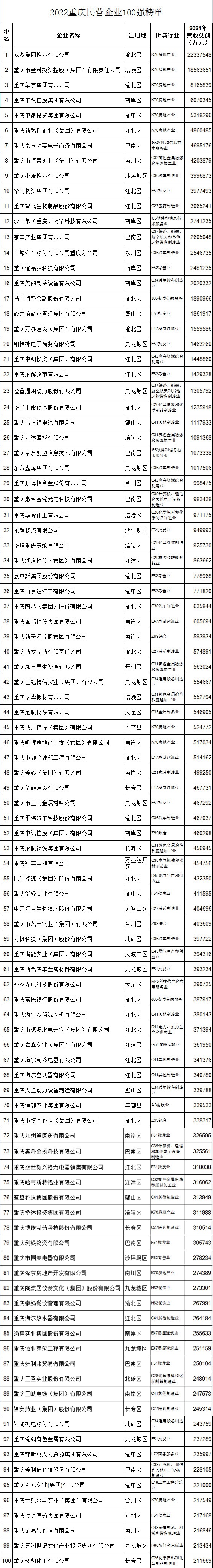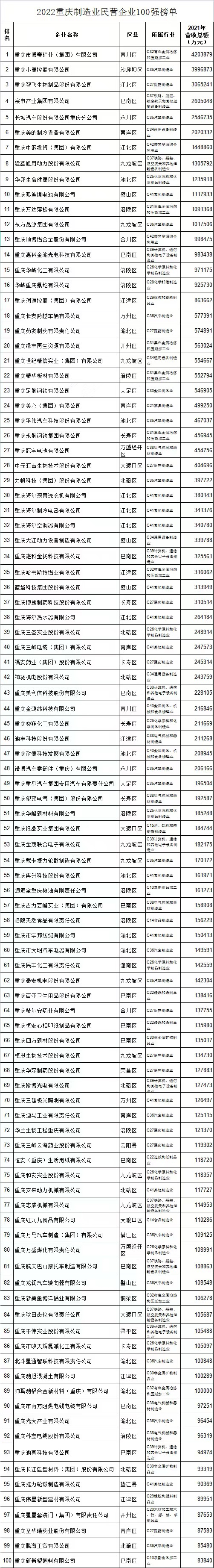 附:2022重慶民營企業100強榜單;2022重慶制造業民營企業100強榜單。