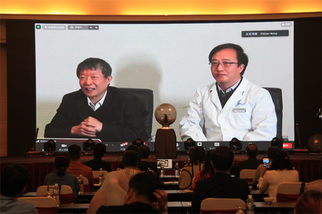 超聲醫學工程國家重點實驗室主任王智彪(左)、重慶海扶醫院院長張煉(右)在培訓班開班儀式上發言。受訪者供圖