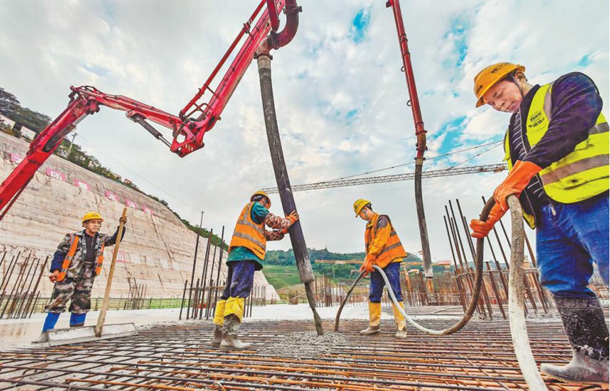 近日,重慶軌道交通18號線金鰲寺車輛段運用庫施工現場,工人們在澆筑混凝土。隨著最后一車混凝土澆筑完畢,18號線最大單體建筑金鰲寺車輛段運用庫全面封頂。整個車輛段主體工程預計今年底完工,投用后可同時滿足56列軌道車輛停放,有效保障全線正常運營。