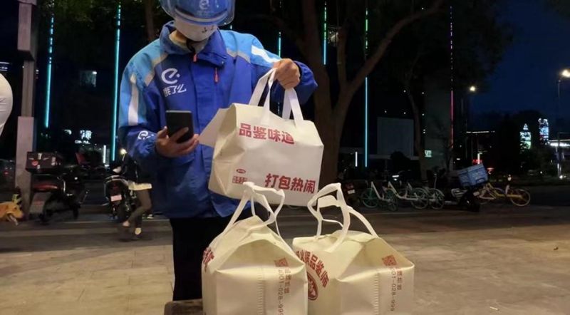 下午,宋西南給記者回來電話,“實在太忙了,疫情期間,居民們的一日三餐,我們耽擱不得?!彼嬖V記者,最近的訂單主要以外賣為主,但也有新變化,除外賣外,零售類的如蔬菜、肉類、米面油、日用品以及水果開始增多,所以每個訂單都是滿滿的一包,同時面對的商家也要多出很多類型。