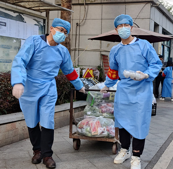 志愿者為社區居民轉運生活物資。農行重慶分行供圖