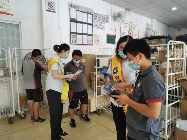 建行員工攜手建信人壽為順豐員工開展新市民服務宣傳(資料圖)。建行重慶市分行供圖