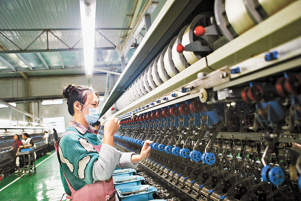 11月23日,黔江區海通絲綢公司生產車間,女工正在繅絲。黔江區工業園區是以農產品加工、新材料、生物醫藥、輕紡服裝等為主導產業的園區。目前,該園區在開展疫情防控的同時,抓好企業生產,確保防疫生產兩不誤。