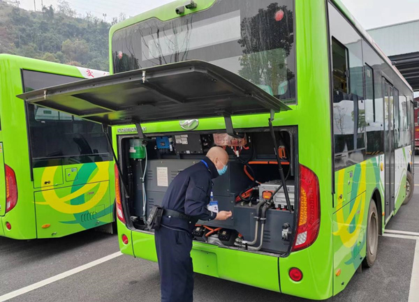 為了助力客運企業復工復產,12月13日,云陽縣公安局交巡警大隊車管所副所長李越帶領民警何慶云來到曙光停車場為萬汽集團云陽公交公司的30輛待投入運營的新能源公交車開展集中上門查驗服務工作。