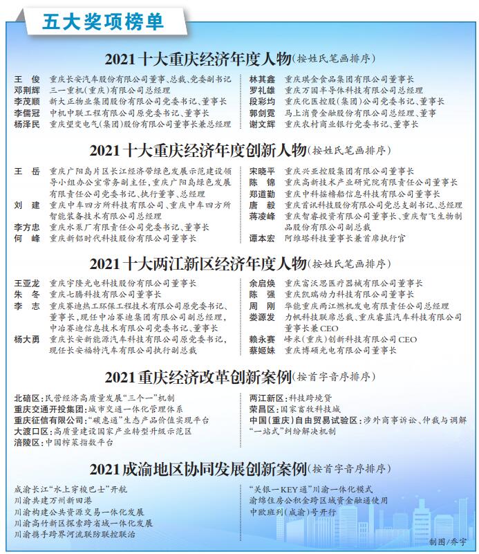 1月11日,“2021十大重慶經濟年度人物”評選頒獎典禮在兩江協同創新區融合創新中心舉行揭曉。