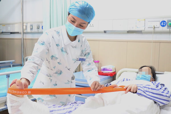 護士指導患者進行功能鍛煉。蔣永勁攝