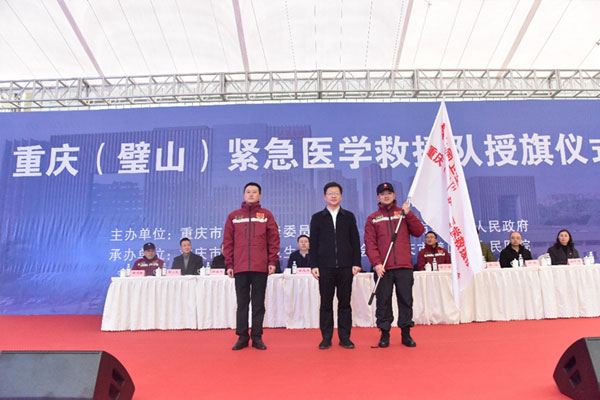 重慶(璧山)緊急醫學救援隊授旗儀式。璧山區衛生健康委供圖