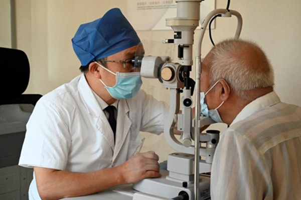周自強為患者看診。重慶愛爾眼科醫院總院供圖