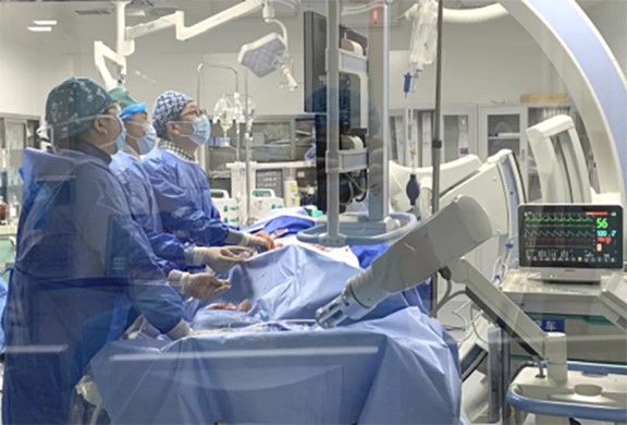 李煒團隊介入手術中。重慶西區醫院供圖