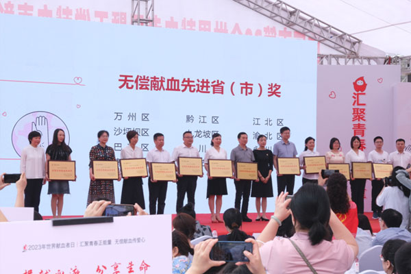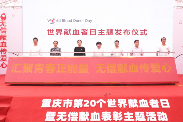 2023年6月14日是第20個世界獻血者日,為感謝無償獻血者以及激勵更多人加入到無償獻血隊伍中來,6月9日,由重慶市衛生健康委主辦,重慶市血液中心承辦的第20個世界獻血者日暨無償獻血表彰主題活動在渝中區開展。