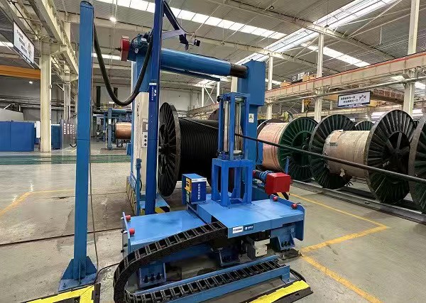 藍色自行小車把巨大的電纜軸送到既定位置,黃色的機械臂將線軸卡好,設備啟動后線纜開始自動纏繞,一盤整齊的電纜線慢慢成型……在重慶泰山電纜有限公司(簡稱:泰山電纜)銅線車間,一盤盤電纜從這里出發,遠銷全國30多個省區市,以及新加坡、澳大利亞等40多個國家和地區。
