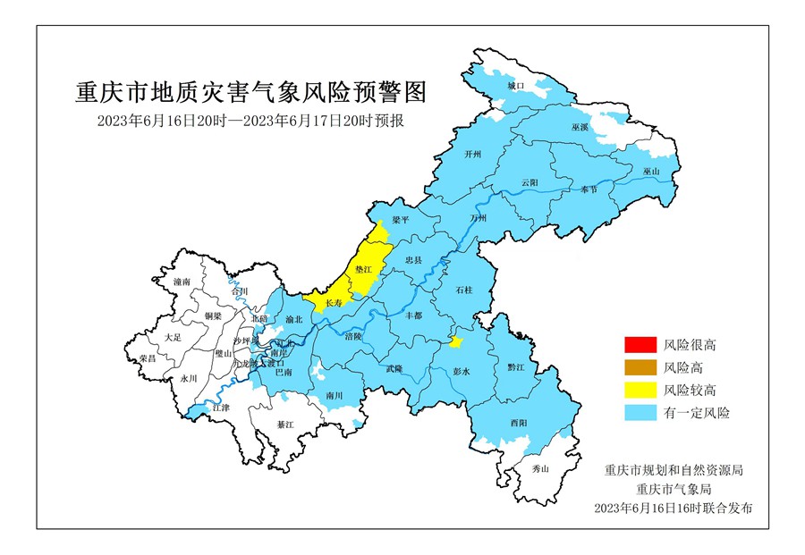 6月16日16時,重慶市規劃和自然資源局、重慶市氣象局聯合發布全市地質災害氣象風險預警。