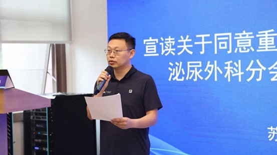 重慶市社會醫療機構協會秘書長蘇暢宣讀泌尿外科分會換屆選舉的批復文件,同意第二屆泌尿外科分會組成名單、主任委員、副主任委員、常務委員候選人名單。