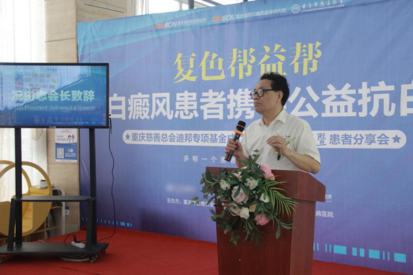重慶市慈善總會副會長況由志致辭。重慶迪邦皮膚病醫院供圖