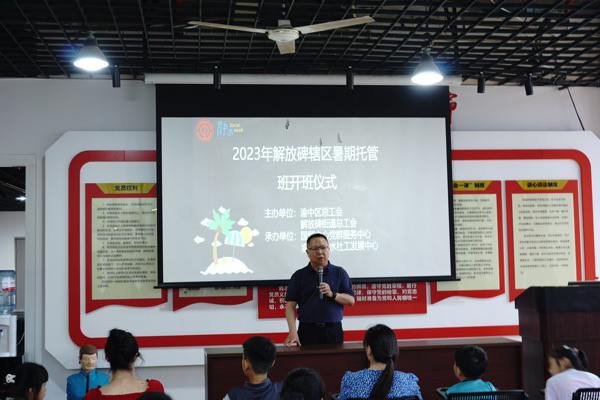 據悉,解放碑街道暑期托管班是渝中區總工會和解放碑街道總工會為職工辦實事的品牌服務,已經連續開展了三年。開班儀式上,解放碑街道黨工委副書記、街道總工會主席龔渝強調了暑期托管期間安全注意事項,并對社會組織托管質量提出了新要求。執行機構負責人詳細介紹了托管班的時間、課程、日常管理等內容,并與職工簽署安全責任書。