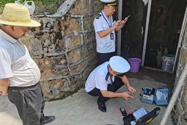 執法人員開展飲用水水質現場檢測。石柱縣衛生健康綜合行政執法支隊供圖