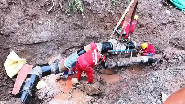 因強降雨天氣影響,北碚區施家梁鎮、東陽街道、復興街道等多地相繼發生山體滑坡、塌方,導致燃氣管道受損,引發燃氣泄漏6余處,管道裸露27處,415戶居民供氣中斷。在持續的強降雨中,為最大限度保障受損管道及周邊的安全,北碚分公司高效實施應急處置 “三步走”:首先對損壞泄漏的管道果斷采取切斷氣源,有效杜絕燃氣次生災害的發生;同時在損壞的管道部位進行臨時性封堵,提前恢復對評估安全的區域的臨時供氣;第三步對局部受損嚴重的管道采取施工遷改,重新規劃安全可靠的管道路由,盡快恢復受影響客戶的供氣。目前,具備恢復條件的居民已全部實現供氣,消除了暴雨造成的安全隱患。