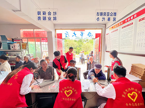 為居民測量血壓、血糖。重慶電訊職業學院供圖