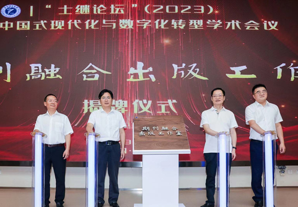為推動期刊數字化轉型升級,重慶理工大學期刊社率先嘗試了“出版+”的全方位融合出版舉措,成功申請到重慶市融合出版專項資金資助項目,并建立了期刊融合出版工作室。開幕式上,為期刊融合出版工作室舉行了揭牌儀式。