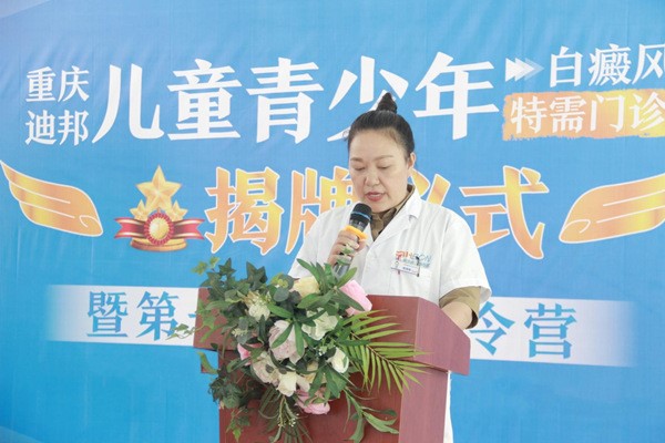 陳國琴致辭。重慶迪邦皮膚病醫院供圖