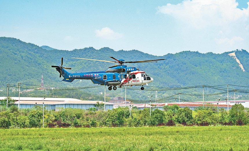 8月11日,渝北區龍興航空應急救援基地,重慶市航空應急救援總隊直升機執行任務起飛。