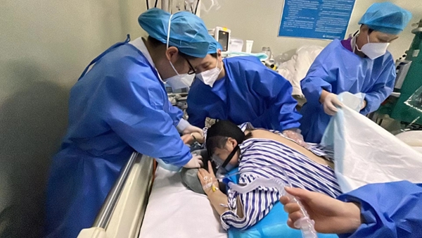 姚宣趕緊讓家長把男童放下平臥,頭偏向一邊,用手清理男童口腔內的嘔吐物,并捫及頸動脈,發現無明顯搏動,馬上對男童進行心肺復蘇,胸外心臟按壓。在清理男童嘔吐物后,姚宣對男童進行了人工呼吸并繼續心臟按壓。