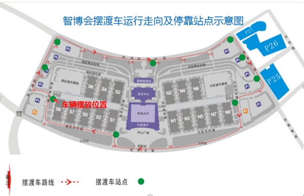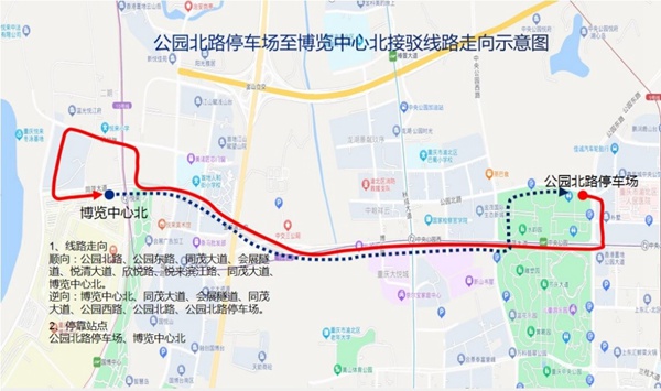 3條外圍停車場接駁公交線路:投入15臺運力從周邊停車場至展館的接駁線路,服務展館周邊主要P+R停車場觀展人流,利用地面公交方式實現停車場與展館接駁。