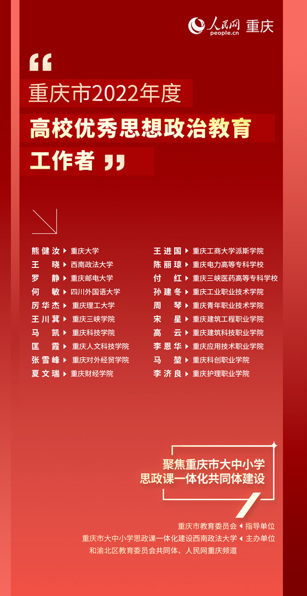 2022年度重慶高校思想政治工作“年度人物”名單出爐