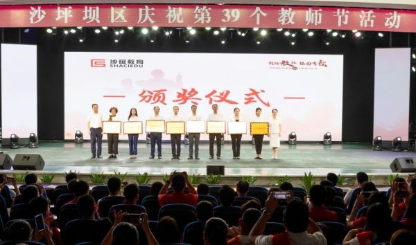 9月8日,沙坪壩區慶祝第39個教師節活動舉行,活動緊扣“躬耕教壇 強國有我”主題,旨在進一步激發廣大教師牢固樹立“躬耕教壇,強國有我”的志向與抱負,弘揚尊師重教,共興尊師風尚,持續擦亮沙磁教育金字招牌,共同書寫沙磁教育全域全面全程優質均衡發展新答卷。