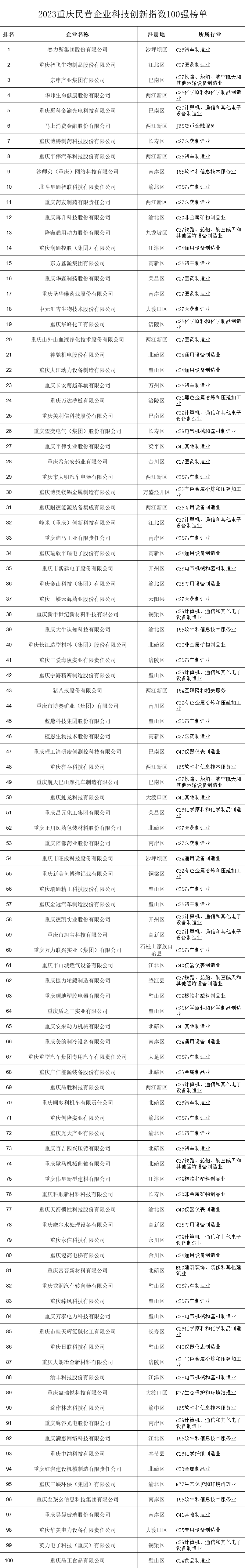 附:重慶市民營企業100強榜單、2023重慶制造業民營企業100強榜單、2023重慶民營企業科技創新指數100強榜單。