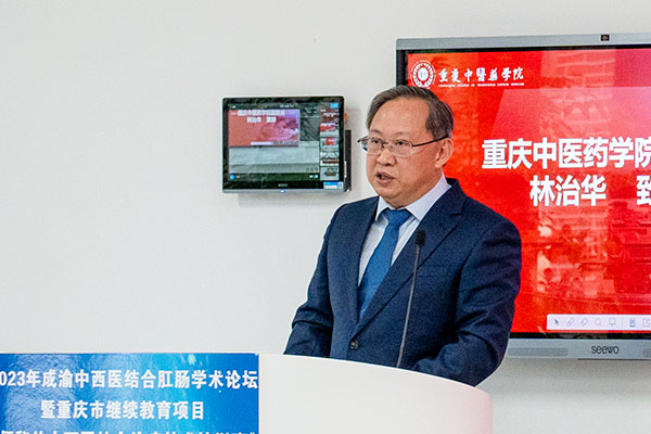 重慶中醫藥學院副院長林治華致辭。重慶市璧山區中醫院供圖