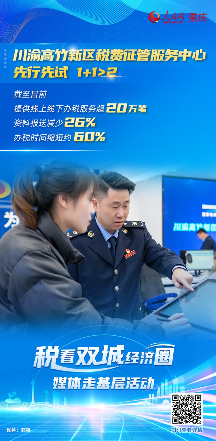 “組織融合是打地基。地基打好了,我們就有更堅固的支撐點去思考創新、謀劃創新、落實創新?!睋ㄓ甯咧裥聟^稅費征管服務中心副主任周翔介紹,近幾年川渝兩地稅務部門在川渝高竹新區稅費征管服務一體化建設中實現了很多改革首創。如線上建成川渝高竹新區電子稅務局,率先在全國實現跨省稅務數據共聯共享;設立首條跨?。ㄊ校┘壖{稅服務咨詢專線電話。線下設立全國首個跨省域社保費服務專窗和“川渝通辦”窗口;聯合兩地司法部門成立稅費爭議調解室,推動跨區域、跨部門稅費爭議事項“一站式”解決等。