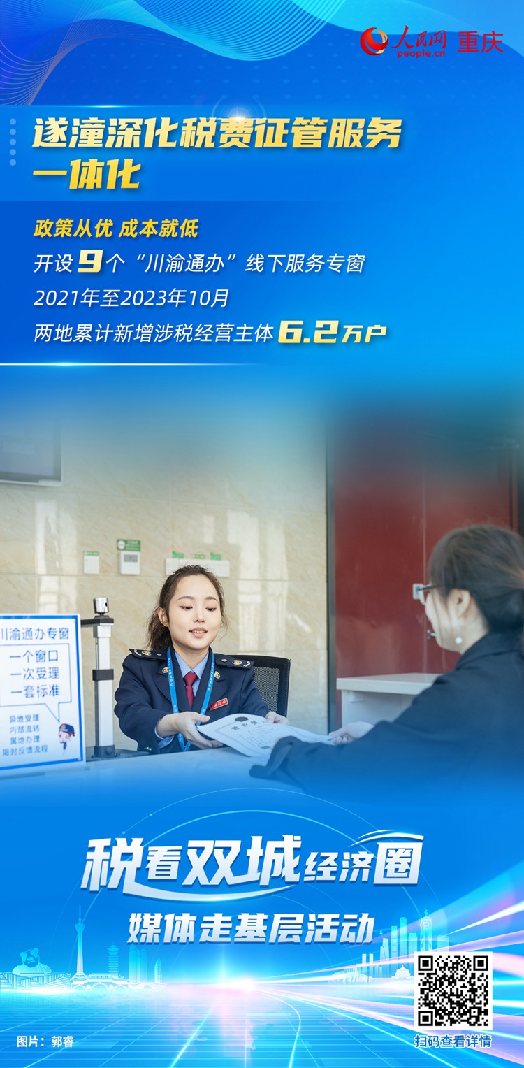 遂寧市稅務局征收管理科科長何其強表示,目前,遂潼稅務部門在辦稅服務廳開設了9個“川渝通辦”線下服務專窗,按照“一門式一網式”服務模式,實行一套標準、一窗受理,確??鐓^辦稅規范統一,無感銜接,有效減少了企業和群眾“兩頭跑”問題。同時,兩地納稅人繳費人還可線上辦理63項跨區域稅費事項,辦稅繳費更加便捷。