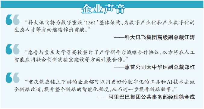 “在重慶,我們建立了科大訊飛西南總部,進一步打造人工智能開放生態,還在西南建立汽車研究院,同時推進人工智能的人才培養?!苯瓭硎?,科大訊飛將為數字重慶“1361”整體架構、為數字產業化和產業數字化的生態人才等方面繼續作出貢獻,同時也期待能在服務數字化供應鏈上,為重慶提供更多的解決方案,助力數字產業高質量發展。