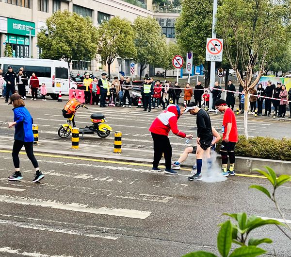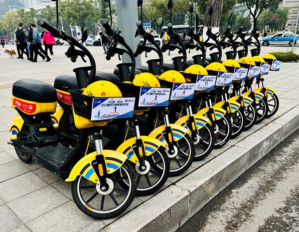12月10日,“大三峽·大巴山”2023重慶萬州環湖馬拉松開賽,42輛小巧靈活的共享電單車成為賽事組委會應急保障備用車,為現場工作人員及志愿者提供應急出行服務。