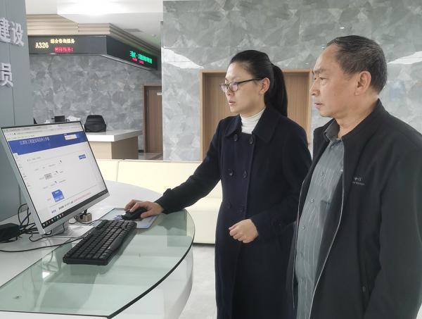 工作人員指導施工許可分段式辦理現場。重慶市住房城鄉建委供圖