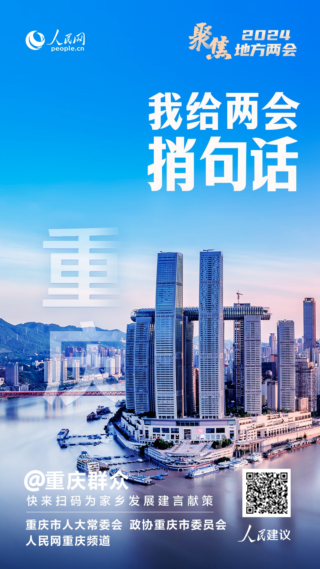 人民網重慶1月15日電(陳琦)2024年重慶市兩會即將拉開帷幕,即日起,人民網聯合重慶市人大常委會、政協重慶市委員會推出“我給重慶兩會捎句話”大型建言征集活動,誠邀廣大網友通過人民網“領導留言板”小程序、“人民網+”客戶端等渠道,為家鄉發展積極建言獻策。