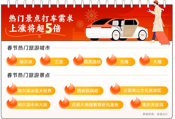 2024年春節期間熱門旅游城市及景點。滴滴供圖