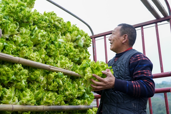 3小時,鄒利和村民們采收的8000余斤新鮮兒菜已整裝待發,即將運往重慶雙福農產品批發市場。