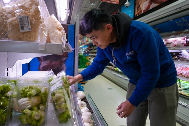 “若符合收貨標準,就將貨物搬到后場進行分揀?!庇鲃倴|說,“一直到早上5點,陸續會有運輸車將新鮮的蔬果、海鮮、日用商品送來。而我們也會根據前一天商品的銷售情況,分揀貨物。在9點開店前,上架補貨商品?!?/p>