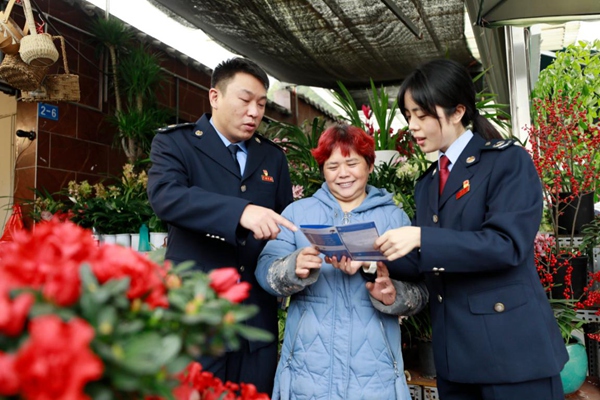 近日,南岸區稅務人員走進南湖路花市,講解個體工商戶相關稅費優惠政策,解答涉稅問題。蔣宜非攝