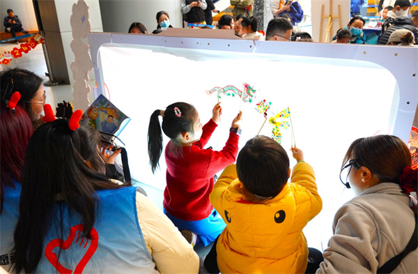在“傳統龍”板塊,觀眾可以了解記里鼓車測量里程原理,體驗文字拓印,感受古人的匠心和智慧;“科技龍”板塊,觀眾通過動手組裝潛水艇模型,學習了解“華龍一號”和“蛟龍號”的科普知識;“未來龍”板塊,觀眾通過皮影戲演繹、繪畫等形式,寄托對龍年的美好祝福與希望;“科趣新春”游園活動板塊則將科學制作與趣味游園相結合,親子家庭在導電實驗、搭橋游戲、趣轉陀螺等充滿趣味性和挑戰性的互動游戲中,體驗趣味科學的魅力,享受新春活動的歡樂時光。