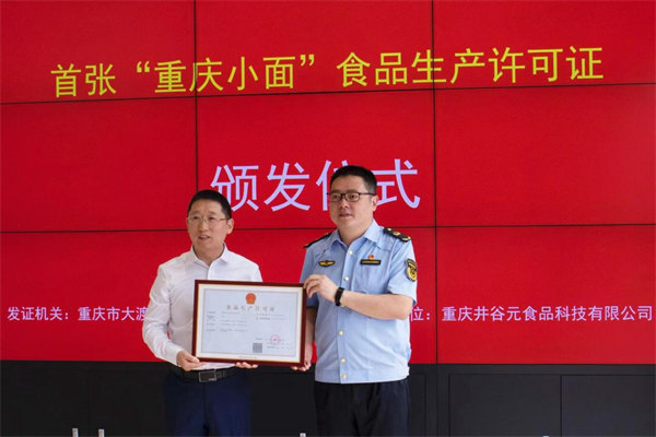 去年4月,大渡口區市場監督管理局為重慶井谷元食品科技有限公司頒發全國首張“重慶小面”食品生產許可證,標志著重慶小面正式作為單獨食品類別,納入食品生產許可管理,為重慶小面“走出去”提供了保障。據了解,作為《重慶小面生產技術規范》(DB50/T1296-2022)地方標準和《重慶小面食品安全地方標準》制定的起草單位,井谷元是第一家把重慶小面半干面保質期做到6個月的企業。
