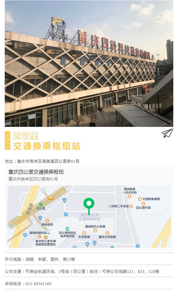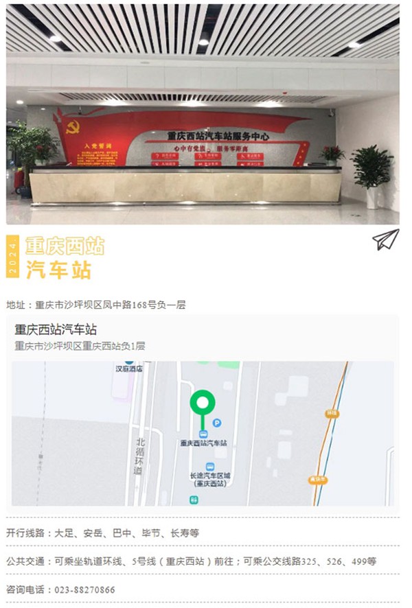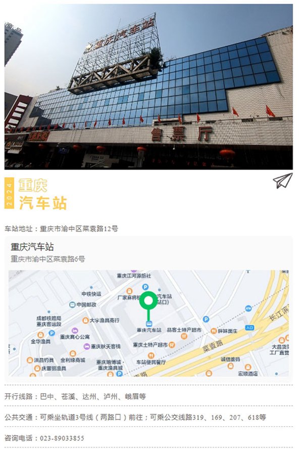 重慶汽車站地址在哪里?去四公里交通換乘樞紐坐軌道哪條線?近日,愉客行重慶市公路客運售票網發布“重慶中心城區汽車站名片”,為出行市民提供出行參考。(愉客行)