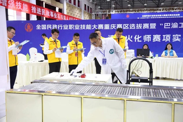 4月1日,由重慶市民政局、重慶市人力社保局、重慶市總工會聯合舉辦的全國民政行業職業技能大賽重慶賽區選拔賽暨“巴渝工匠”杯重慶市第四屆民政行業職業技能競賽在重慶城市管理職業學院開幕。經激烈角逐、層層選拔,共有222名選手進入全市決賽(市級選拔賽)。選手們圍繞養老護理員、遺體火化師、公墓管理員、假肢裝配工和矯形器裝配工5個競賽項目開展比拼。