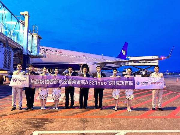西部航空首架全新A321neo飛機成功首航。西部航空供圖