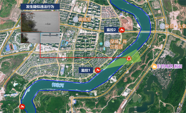 而GIS技術的應用則使得對事發位置的定位更為準確。在實際應用場景,一個視頻監控能覆蓋左右岸、上下游3KM河段,攝像頭安裝位置不能代表事件發生位置。系統能夠將監控視頻中的圖像位置實時轉換為真實世界的地理坐標,無需依賴雙目攝像頭或GPS設備等高成本的硬件。通過圖像分析,單目攝像頭即可實現這一功能,從而顯著降低了技術落地成本。