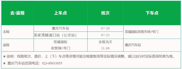 往返15元 去雙福國際農貿城可在陳家坪汽車站坐車