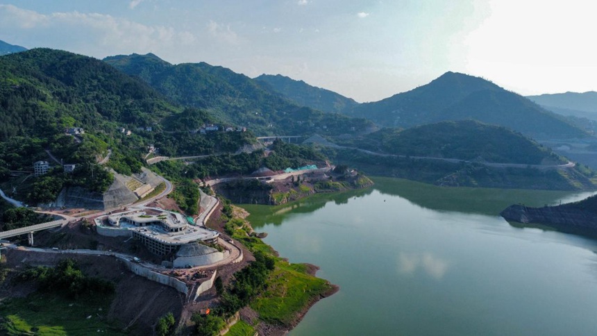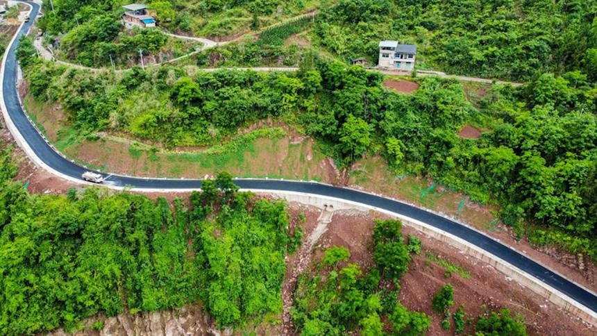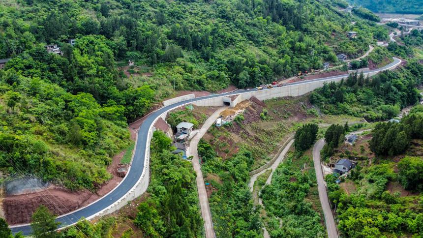 云陽恐龍地質公園內部道路開始瀝青攤鋪。中交第四航務工程局有限公司供圖