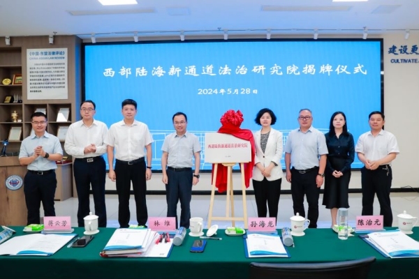 5月28日下午,西部陸海新通道法治研究院揭牌儀式暨法治護航西部陸海新通道建設研討會在西南政法大學寶圣湖校區舉行。